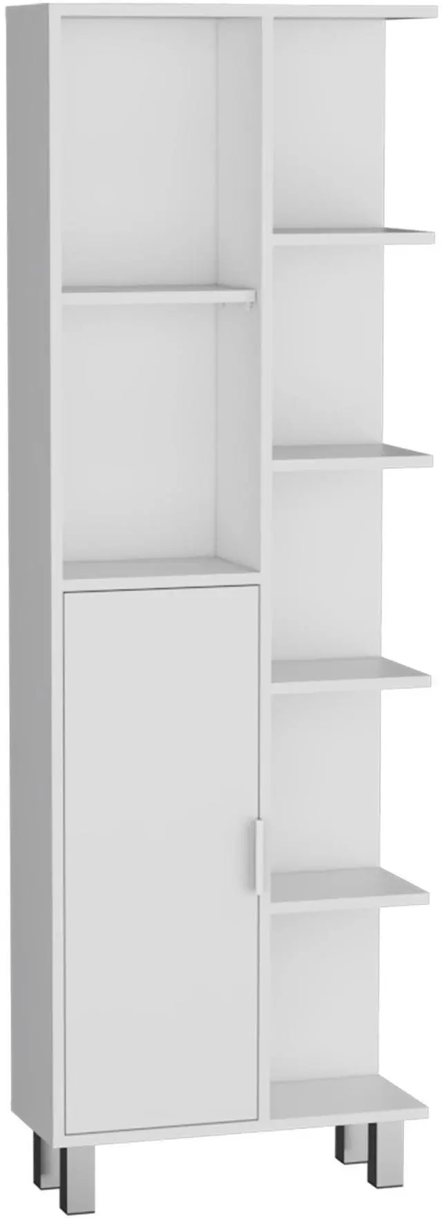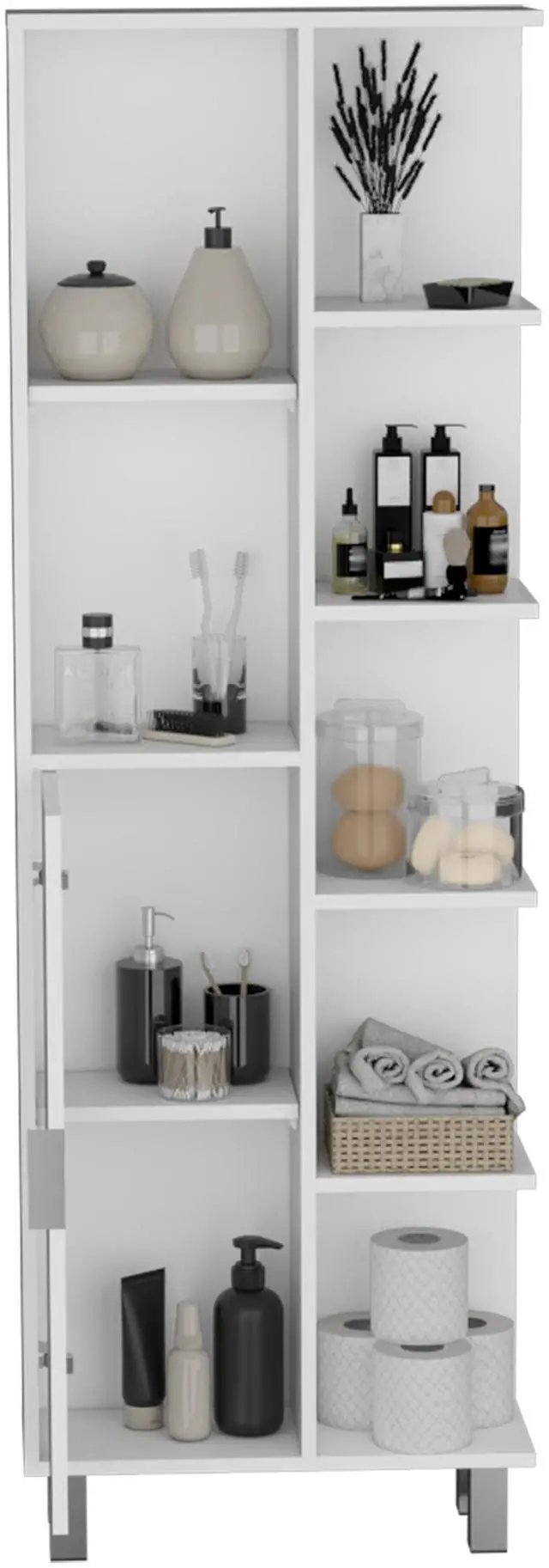 It offers seven open shelves to store towels, linens and other bathroom essentials in an organized manner.