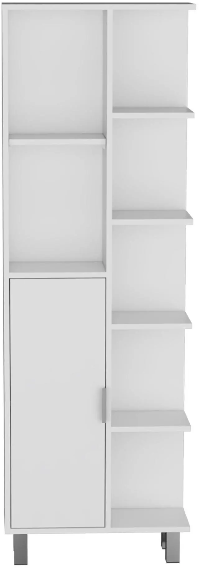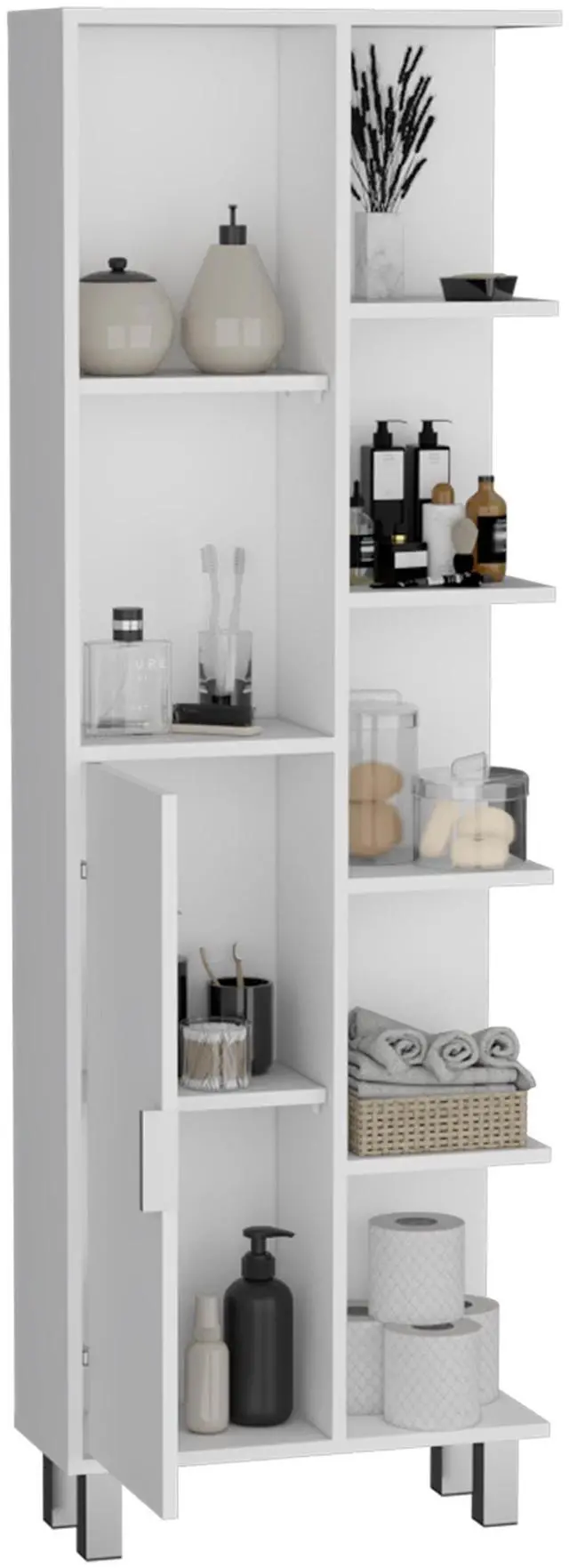 This 63-inch tall linen storage cabinet adds a touch of sophistication to your bathroom space with its sleek design and classic white finish.