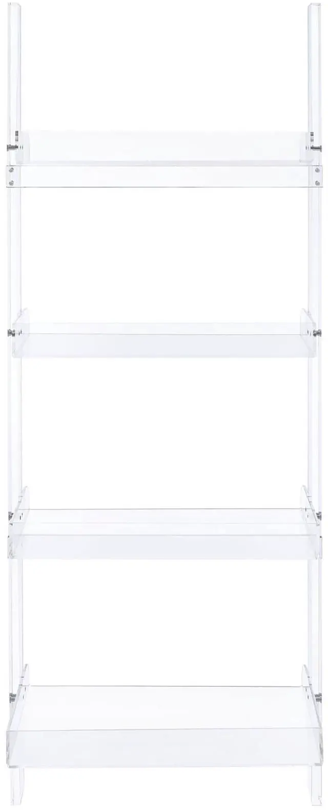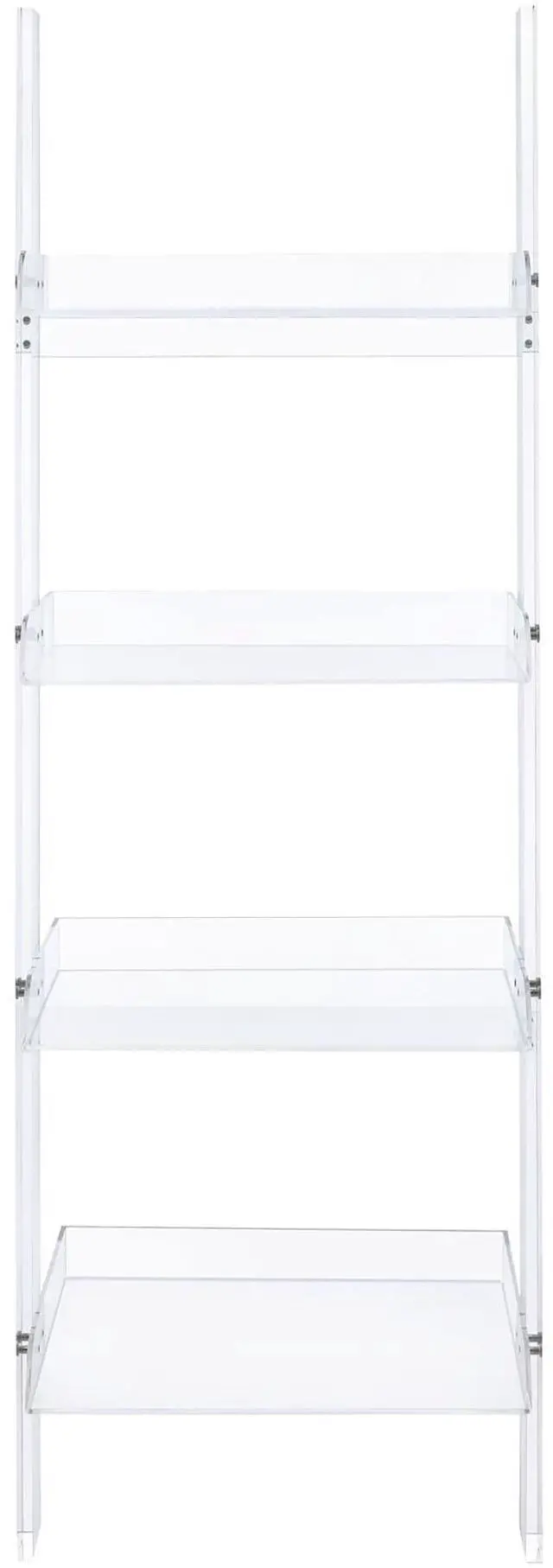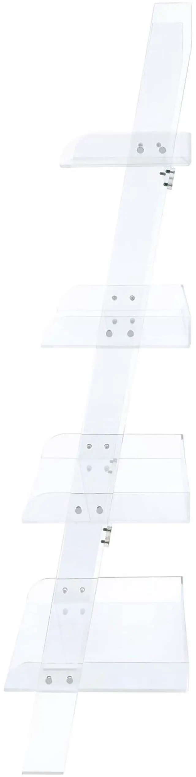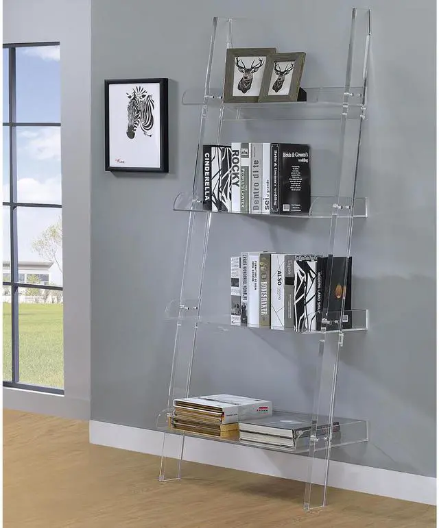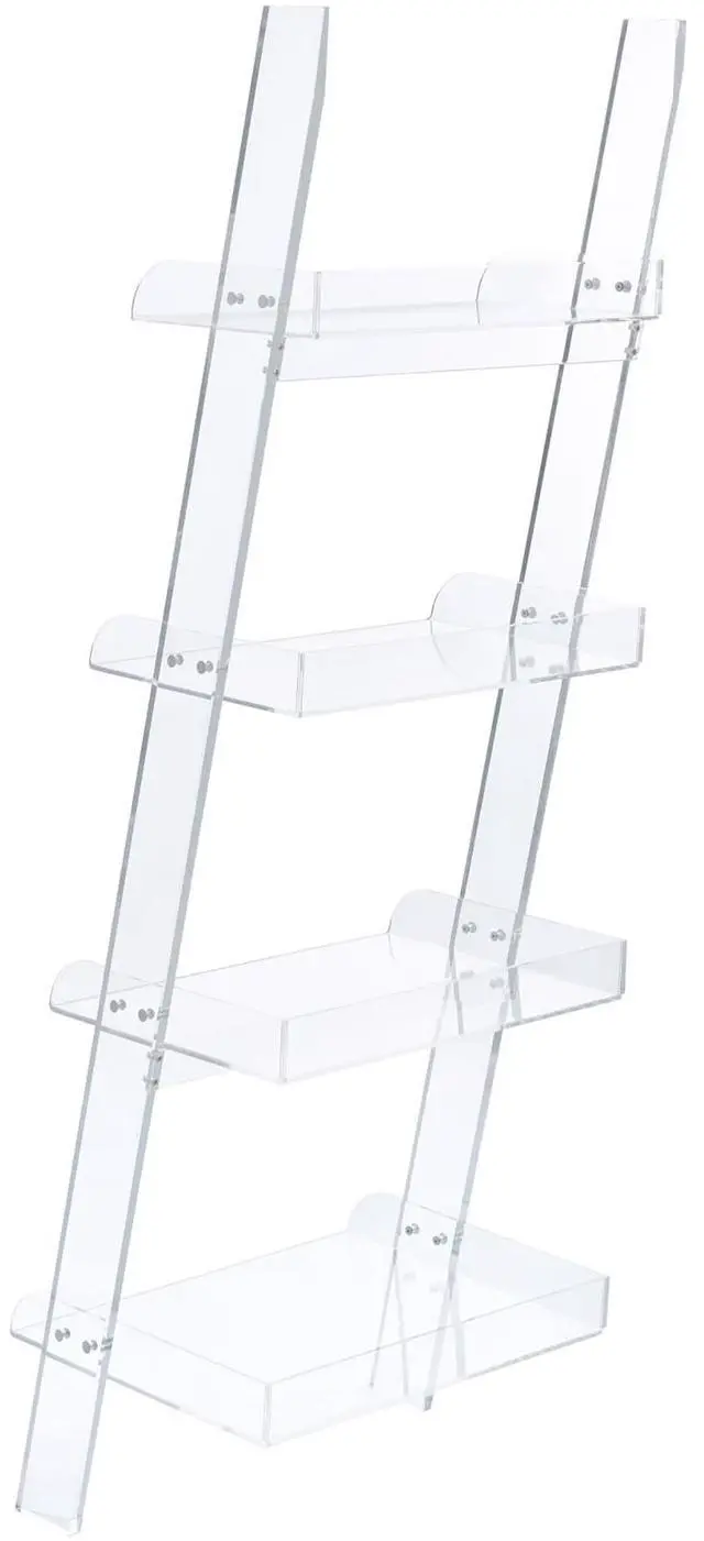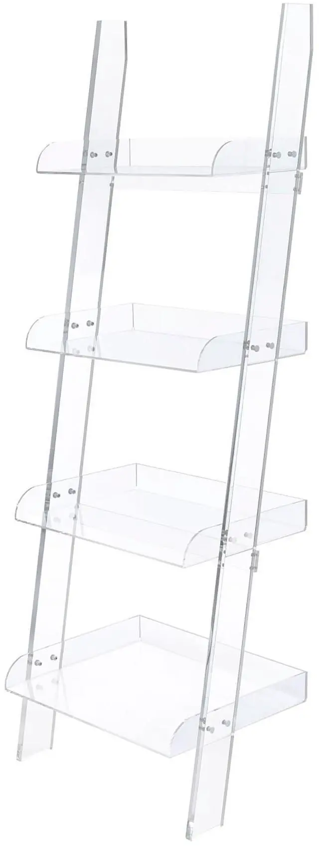 With its four shelves aligned on a slant, this ladder-style bookcase presents a visually appealing and unique arrangement