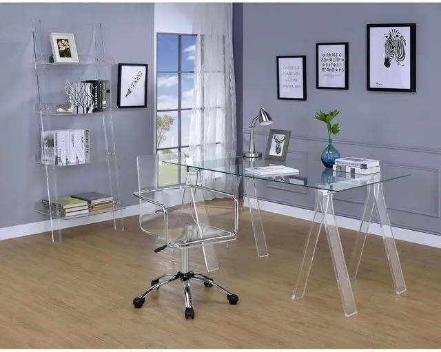 The transparent and airy nature of the acrylic construction brings a sense of freshness and novelty to the room