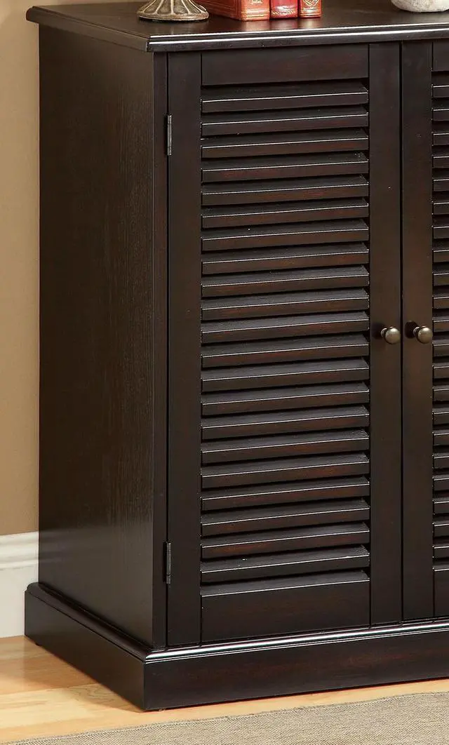 Modern Transitional Design 1pc Shoe Cabinet Espresso Finish Adjustable Shelves Louver Design Doors Home Furniture Shoe Rack