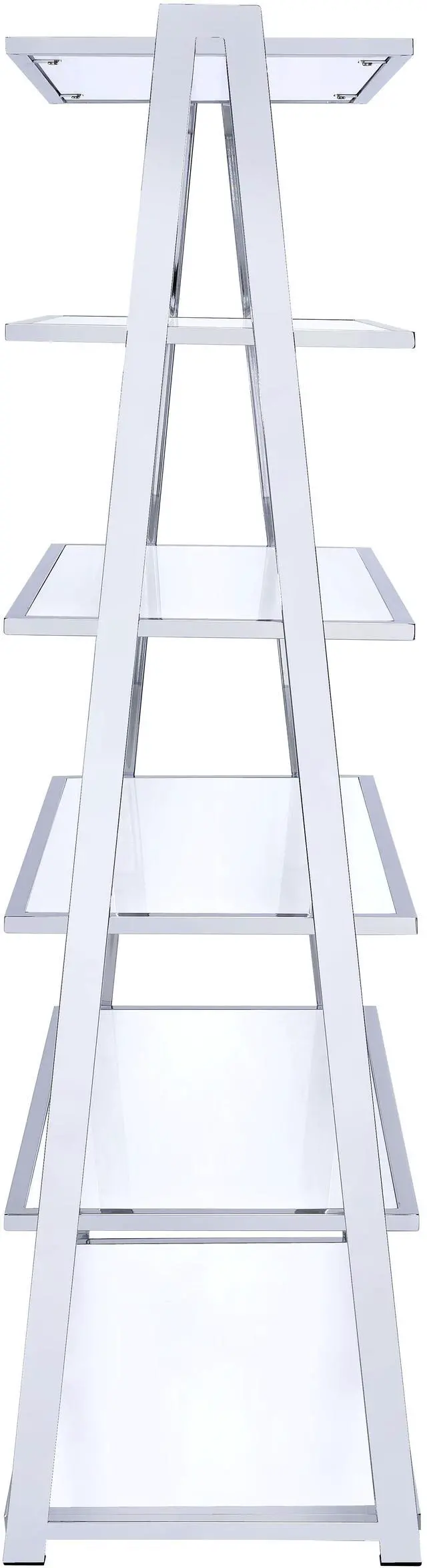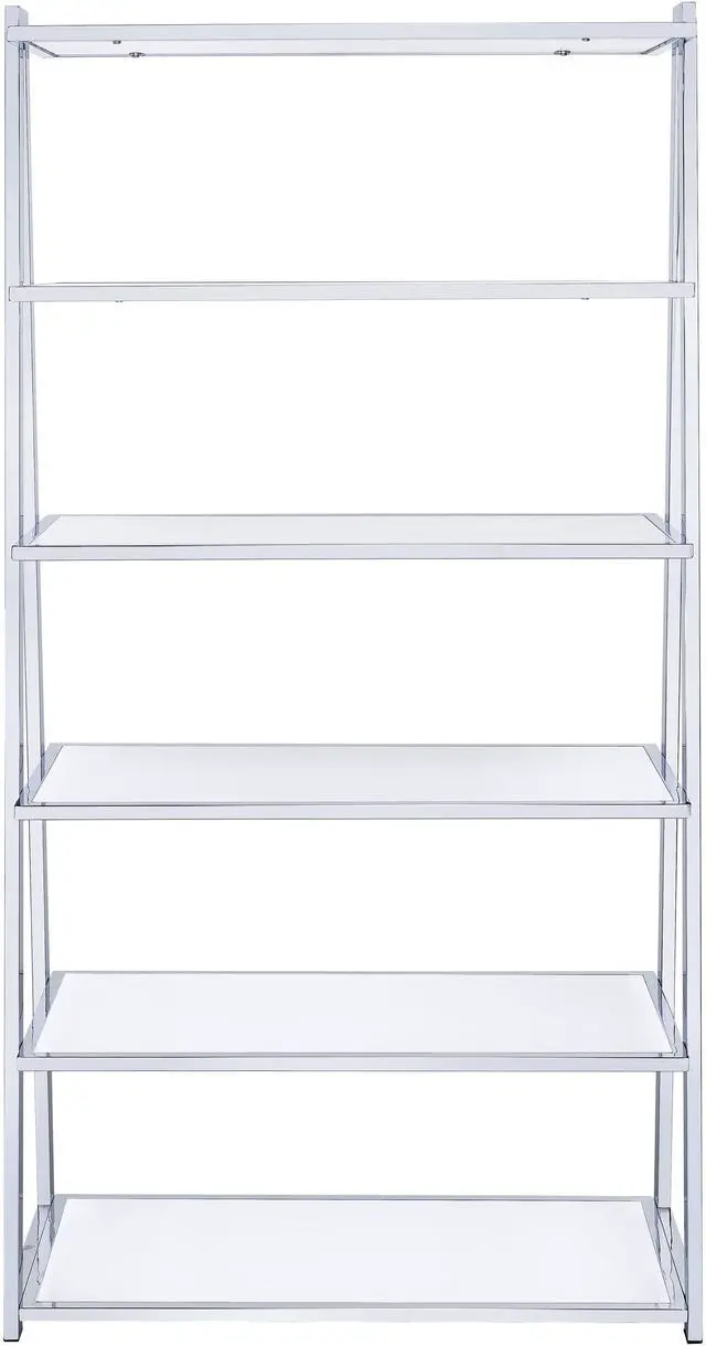 • KD, Rectangular Bookshelf, 6 Fixed Shelves, Metal Frame: Chrome Finish (Open Back Panel), Wooden Shelves: High Gloss Finish