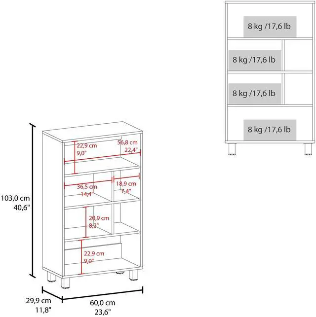 Provides ample storage for books, decorative items