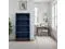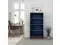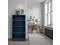 Dimensions: 32" wide x 17" deep x 60" high Made of Poplar Solids and Okume Veneers with Knotty Alder Base Blue Denim and Whiskey Finish Three Shelves Platform Base