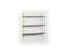 Modern design with bold yellow metal side supports. 3 wide shelves for ample storage and display. Durable wooden construction with sturdy metal frame. Wall-mounted to save space and enhance aesthetics. Great for decorative use in various home settings