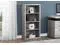 The bookshelf fits in the corner like a charm; 5 fixed tray style shelves in a thick panel construction are perfect for books and other decor items