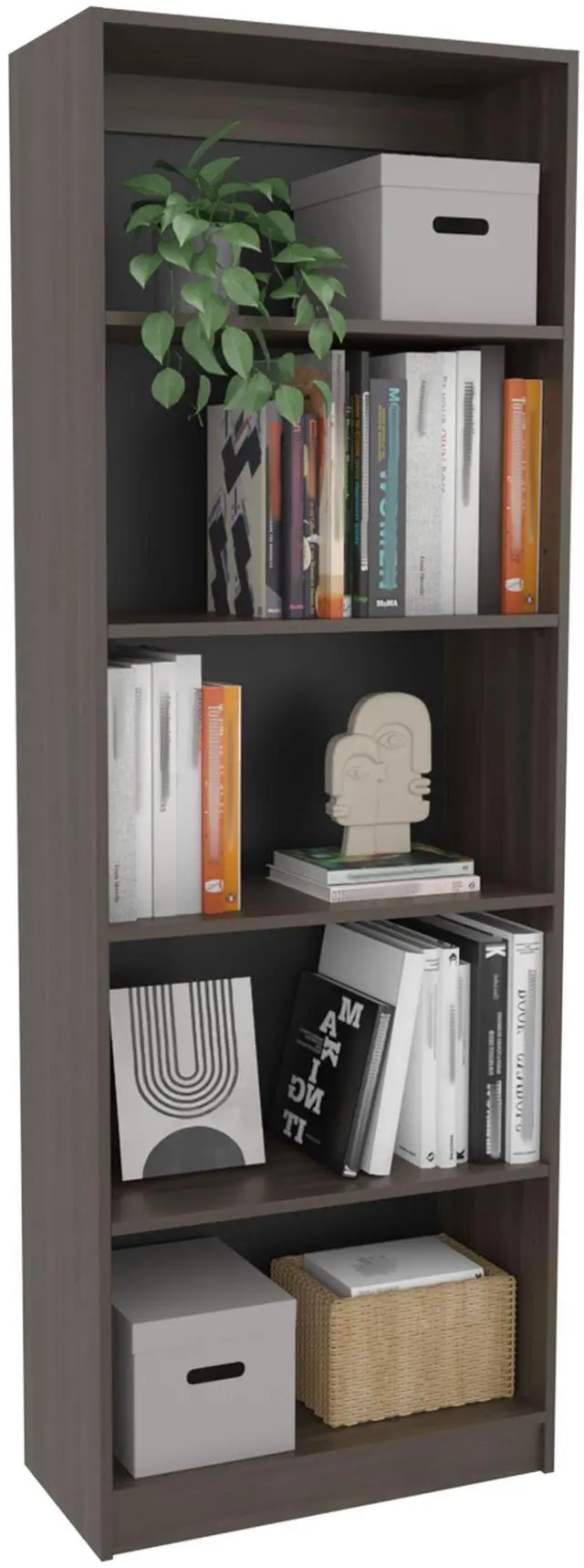 Fourspaciousopenshelvesofferpracticalstorageforbooks, framedphotos, ordecorativepieces.