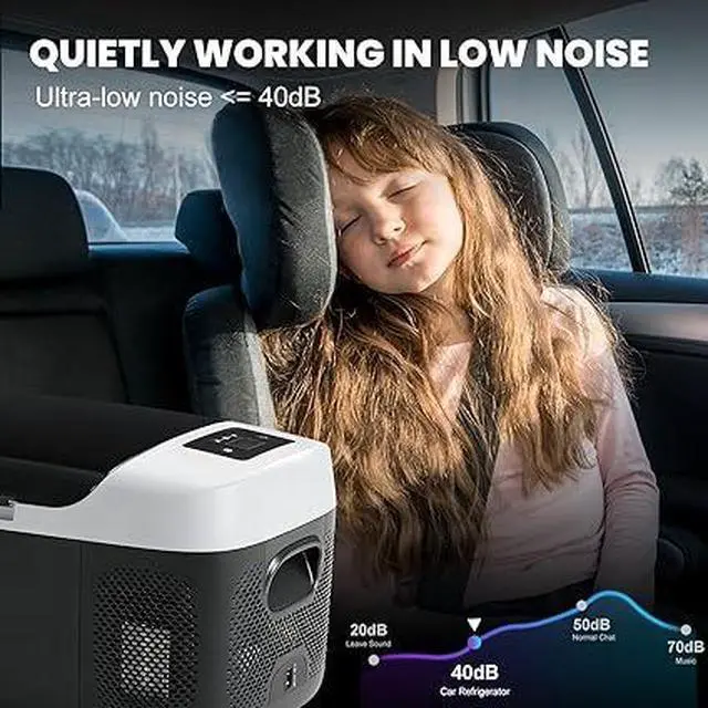Quiet 40dB Operation with LED Child-Lock Panel: The car cooler runs quietly at 40dB for comfortable driving and resting; features an intuitive LED control panel with a child-lock function to prevent accidental touch during travel or outdoor activities.