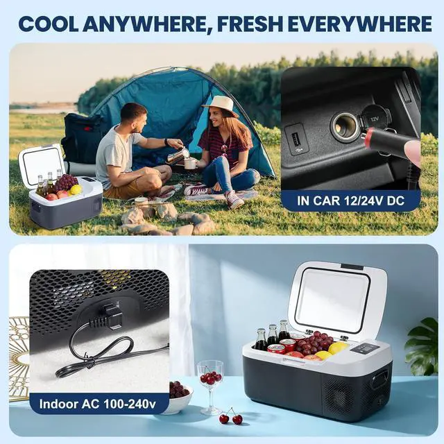 Dual Power & Built-in Cutting Board for Cars & Home: This versatile cooler supports 12/24V DC and 100-240V AC as a 12v/plug-in/electric cooler, with battery protection to prevent drainage. Its built-in cutting board adds meal-prep convenience for trips, camping, and outdoor use.