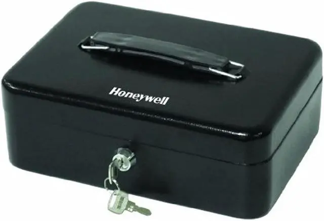 Cash Depository Safe, Black, Net Weight 2.6 lb, Capacity 0.14 cu ft, Not Rated Fire Rating, Water Endurance Not Specified, Material Steel, Finish Powder Coated, Max. User Codes 1, Number of Shelves 1, Number of Doors 1, Number of Drawers 0, Lock Style Keyed, Number of Bolts 1, Outside Height 4 13/64 in, Outside Width 10 7/64 in, Outside Depth 7 13/32 in, Inside Height 3 7/64 in, Inside Width 9 1/2 in, Inside Depth 7 in, Door Opening Height 10-7/64 in, Door Opening Width 10-7/64 in.