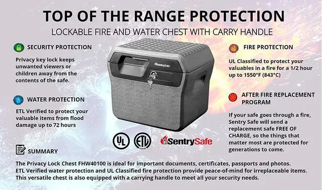Sentry® Safe Waterproof Fire-Resistant File, 0.66 cu ft, 16.63 w x 13.88 d x 14.13 h, Charcoal Gray