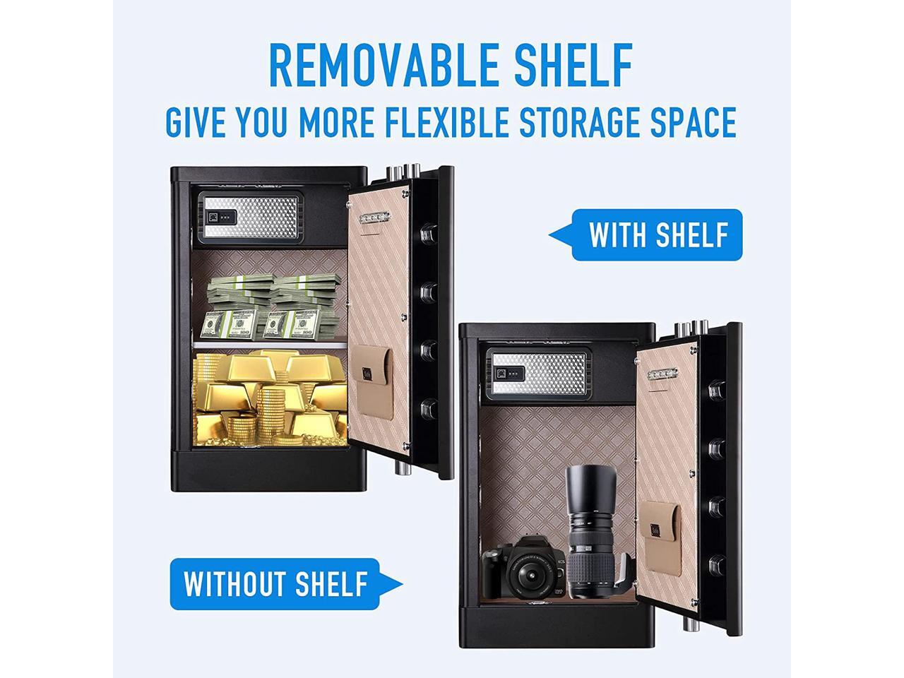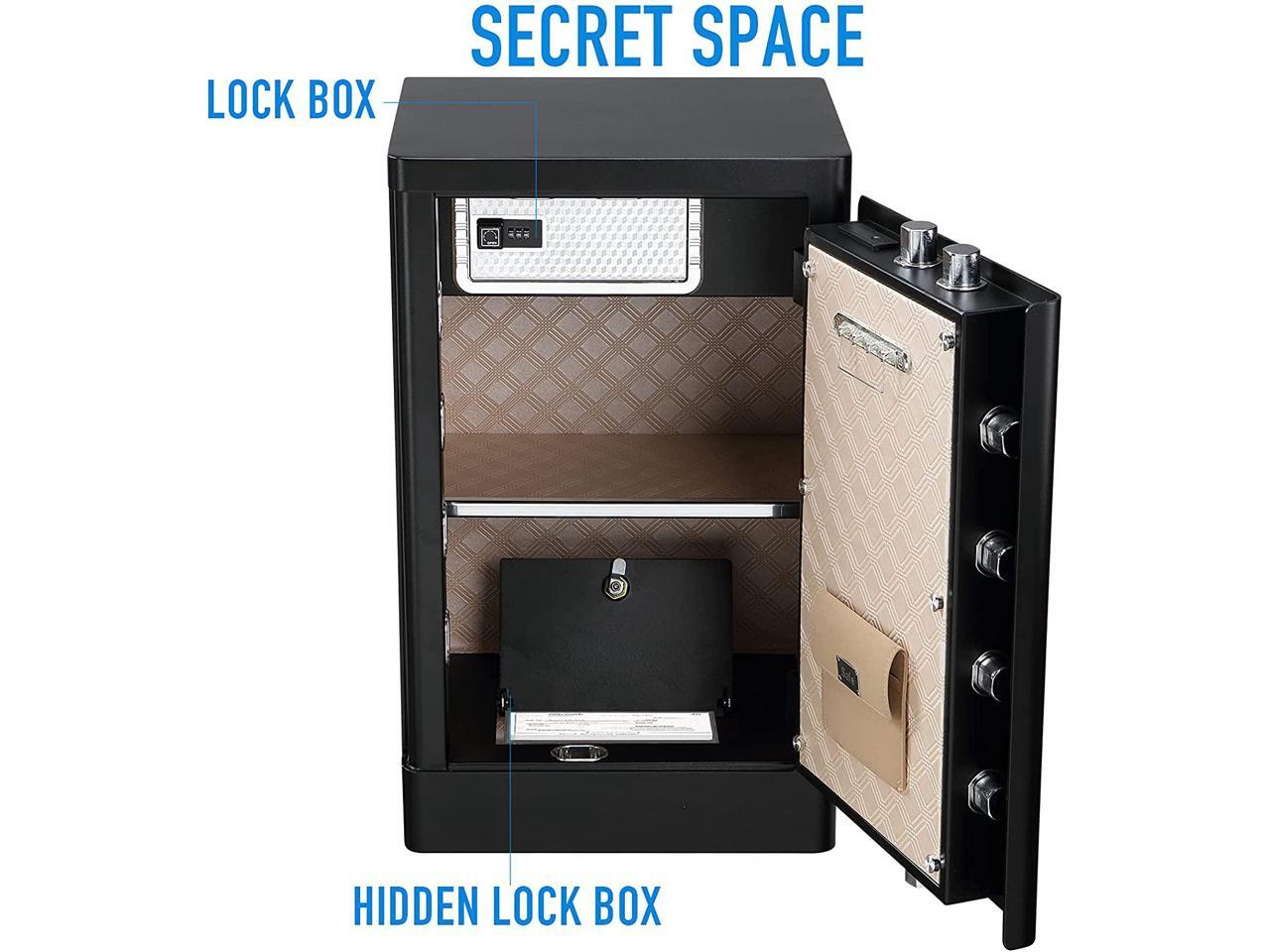 - DOUBLE SECURITY: There is a separate box in the safe where you can put some more expensive things. There is also a hidden compartment at the bottom, which is very suitable for placing important documents and certificates.
