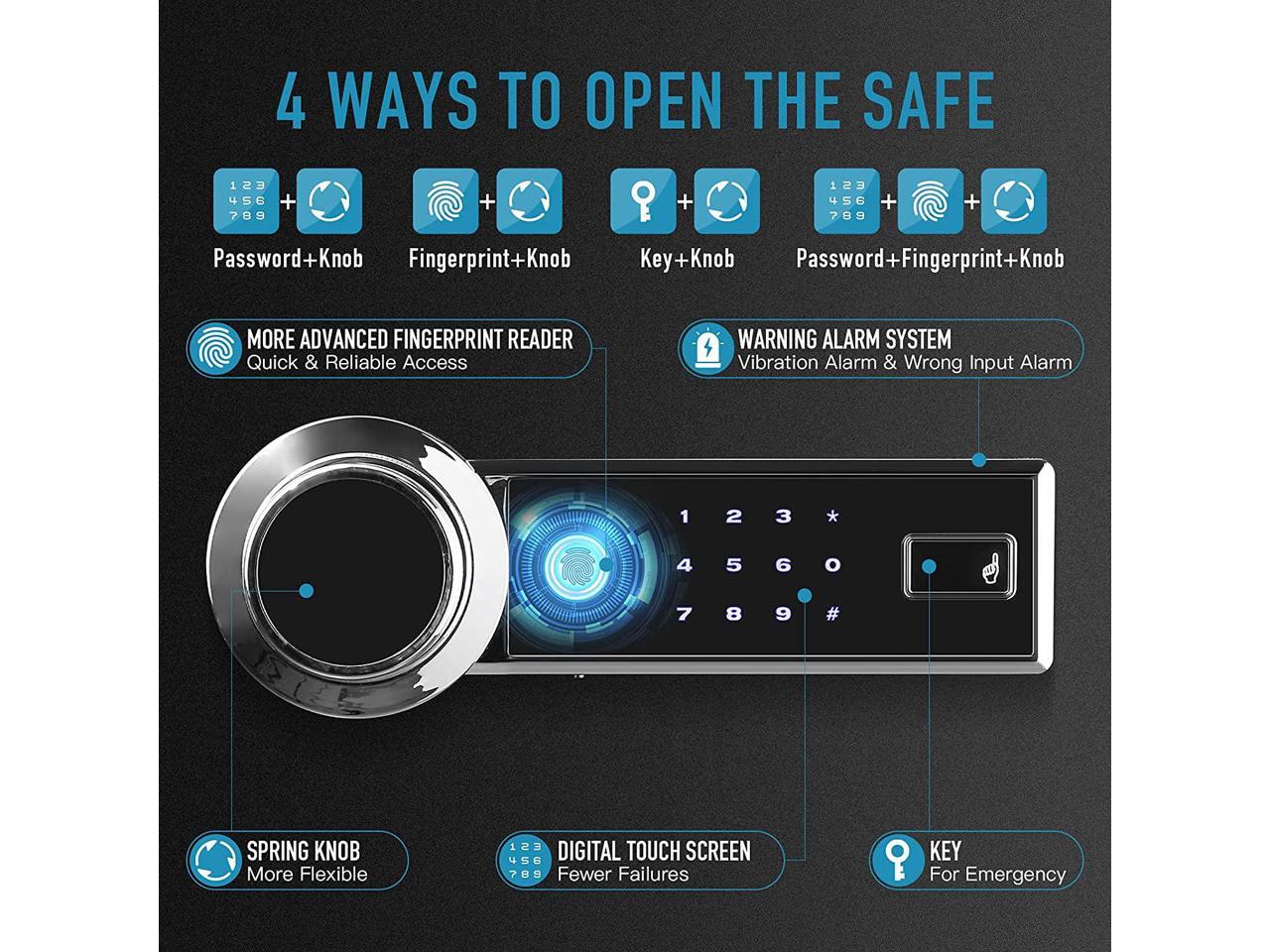 Fingerprint Safe Box 3.83 Cubic Feet with Separate Lock Box and Bottom Compartment, Touch Screen Keypad Security Box with Induction Light and Leather Key Card Pouch