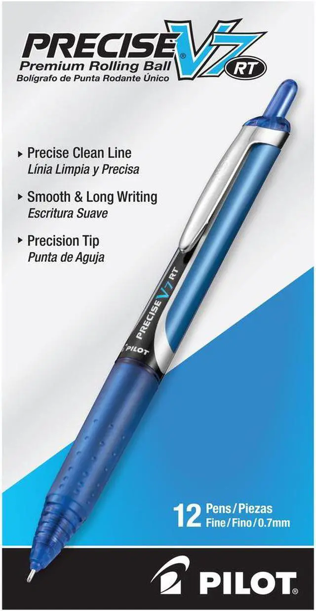 Patented Precision Point Technology and dimpled rubber grip deliver a superior writing experience. Unique liquid formula maintains consistent flowing ink. The retracting mechanism makes this pen airplane safe. Refillable. Pen Sub-Brand & Product Family: Precise V7RT; Pen Type: Roller Ball Pen; Pen Style: Retractable; Pen Tip Type: Needle.