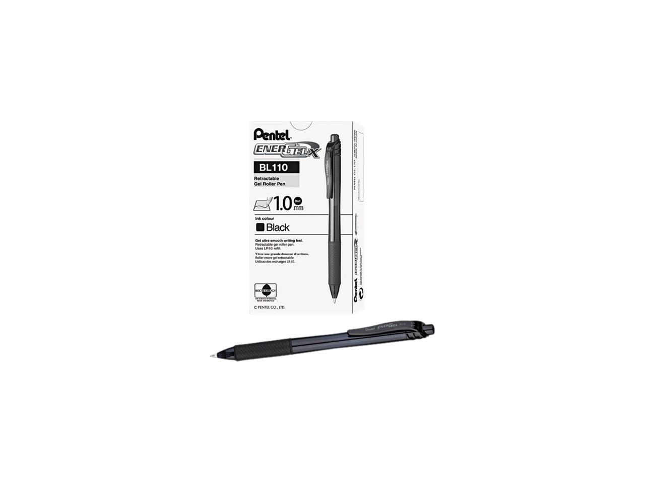 Pentel EnerGel-X Retractable Roller Gel Pen 1mm Trans Black Barrel Black Ink Dozen BL110A