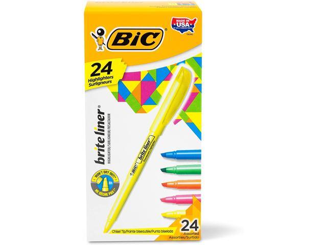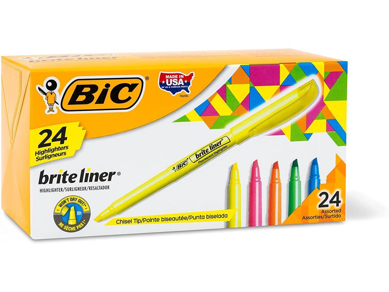 - One 24-count pack of BIC Briteliner Highlighters in assorted colors. ACMI-approved for safety and reliability in school or office environments.