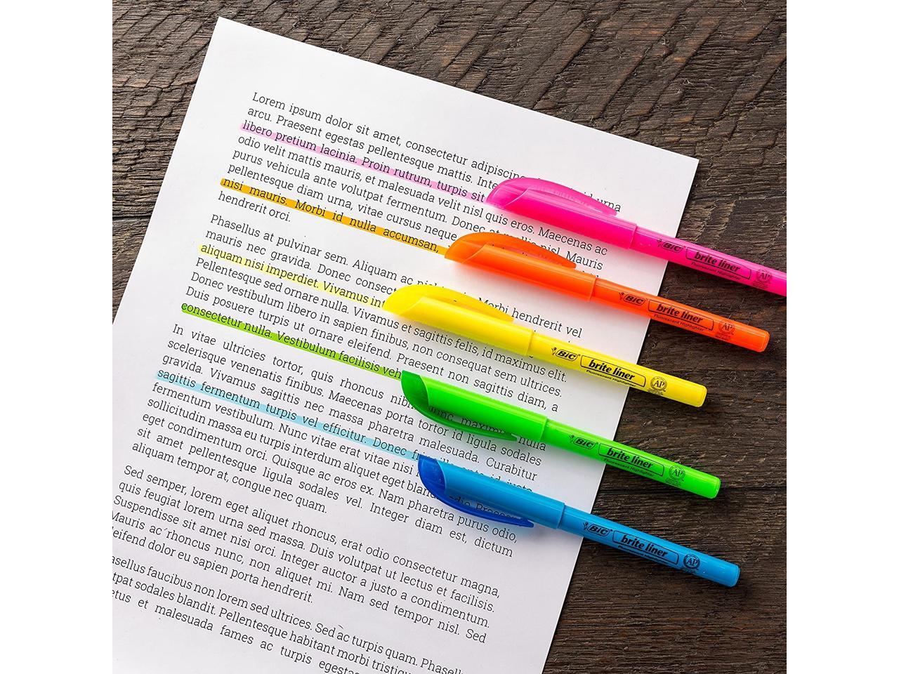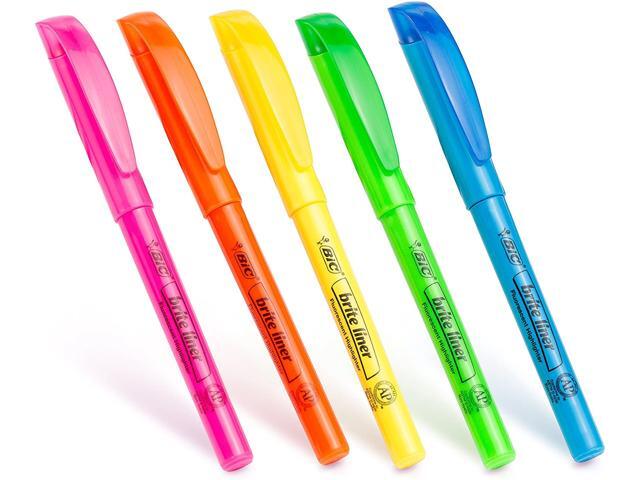 - BIC Briteliner Highlighters are perfect classroom highlighters with a chisel tip for versatile use. Ideal highlighter markers for school with a comfortable pen-shaped design. Safety Data Sheet.