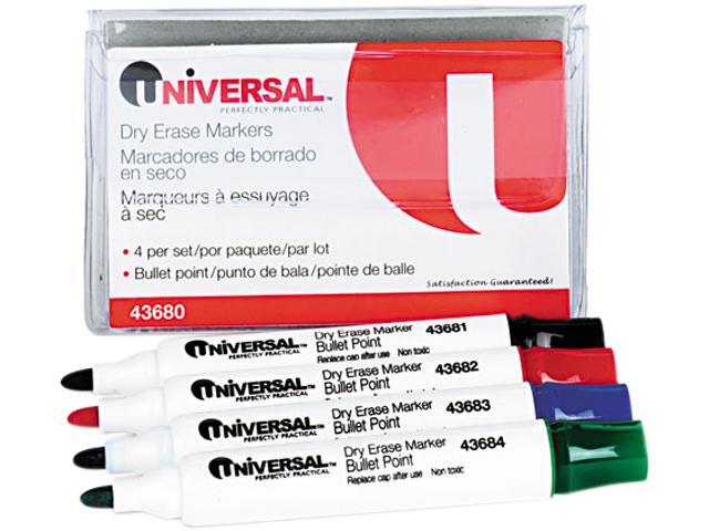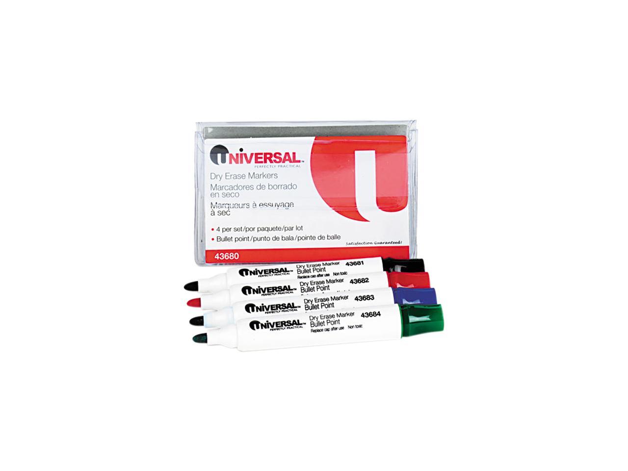 Universal Dry Erase Whiteboard Markerss, Bullet Tip, Assorted, 4/Set, ST - UNV43680