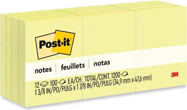 Original Pads in Canary Yellow 1 1/2 x 2 100-Sheet 12/Pack