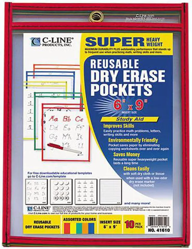 Pocket saves paper by allowing the same worksheet to be used over and over again. 10 per pack.