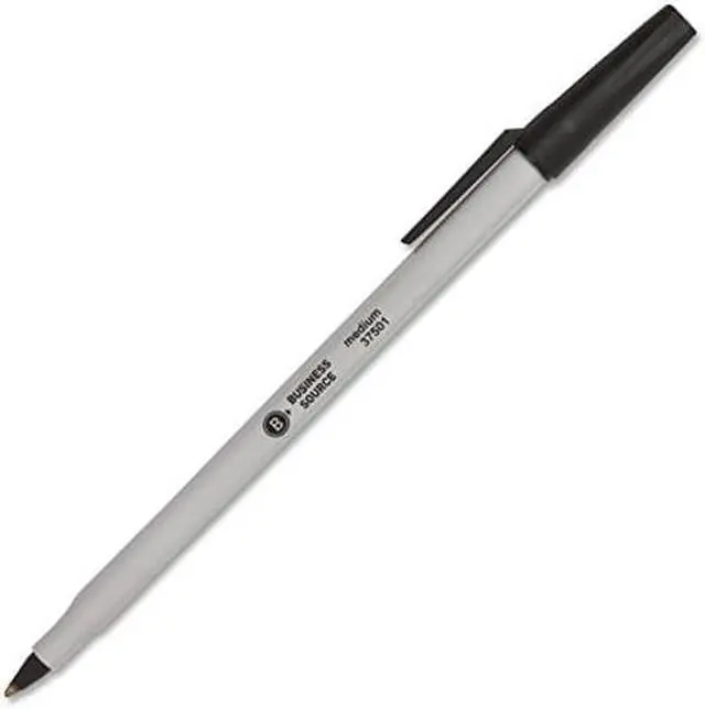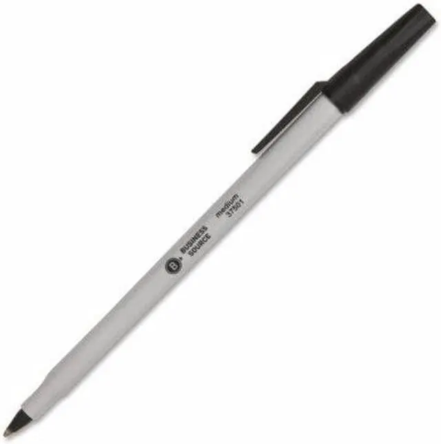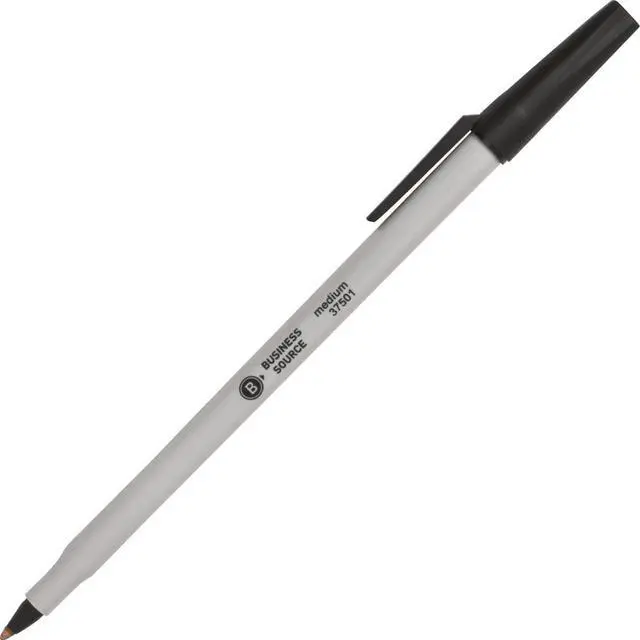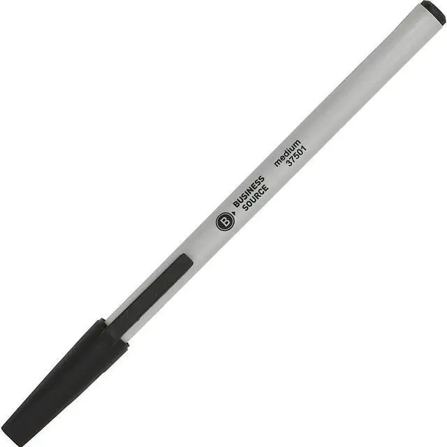 Business Source Ballpoint Stick Pens Med Pt Lt Gray Barrel/ Black Ink 37501