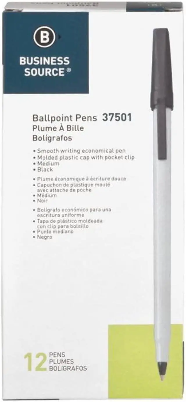 Ballpoint stick pens deliver smooth writing and water-resistant ink. Ink color matches the end plug and molded plastic cap. Cap includes a convenient pocket clip to attach pen to notebooks, pockets and more.