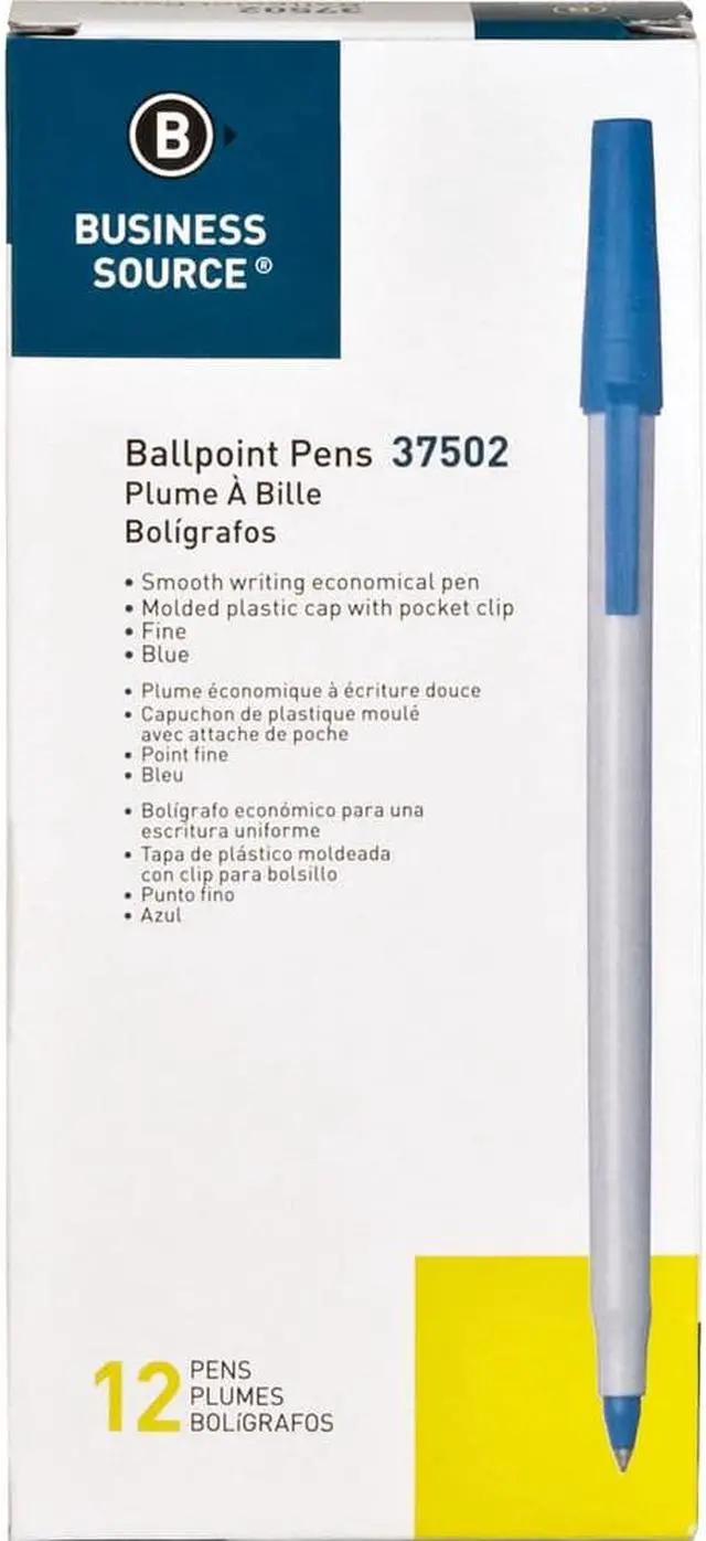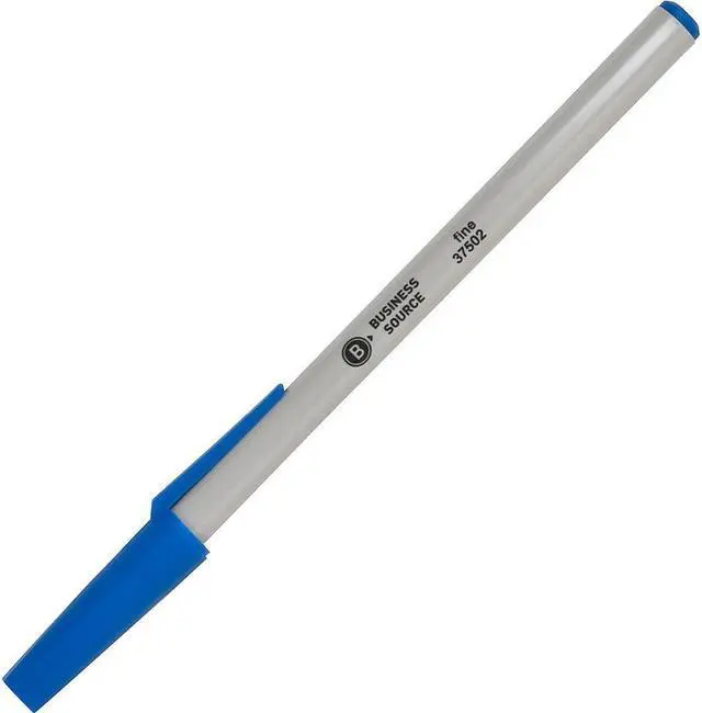 Ballpoint stick pens deliver smooth writing and water-resistant ink. Ink color matches the end plug and molded plastic cap. Cap includes a convenient pocket clip to attach pen to notebooks, pockets and more.