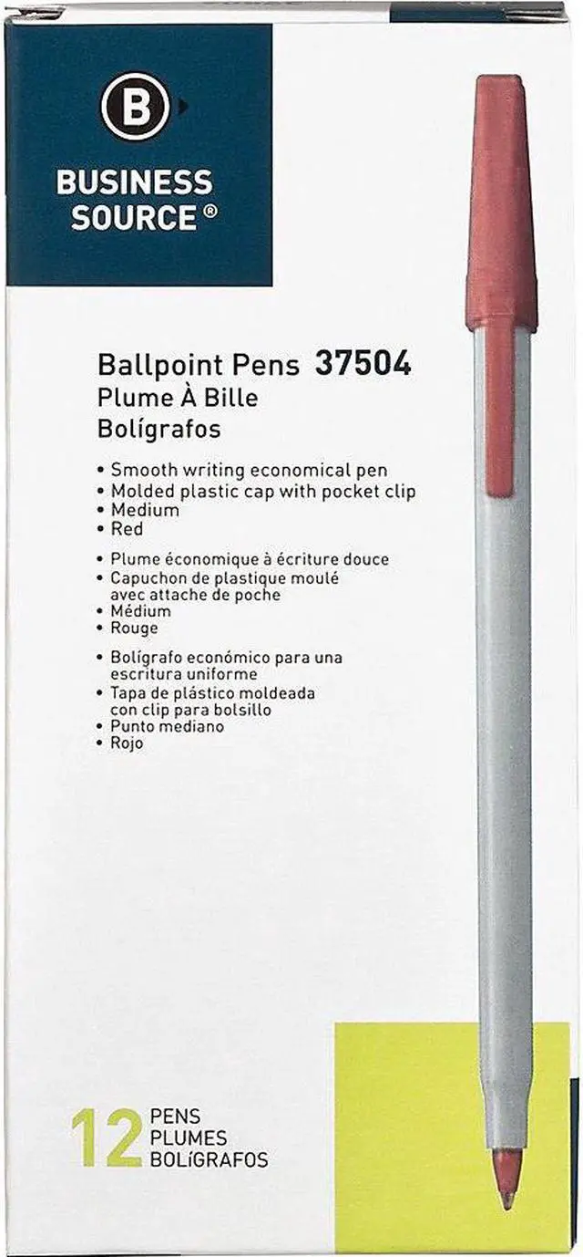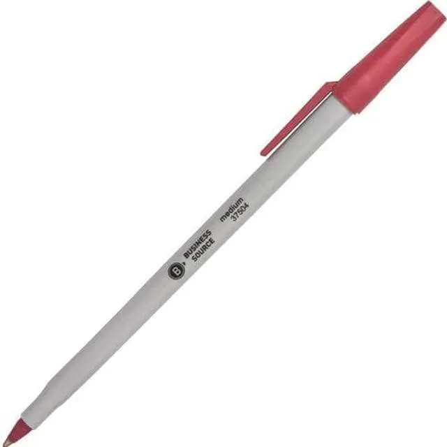 Ballpoint stick pens deliver smooth writing and water-resistant ink. Ink color matches the end plug and molded plastic cap. Cap includes a convenient pocket clip to attach pen to notebooks, pockets and more.