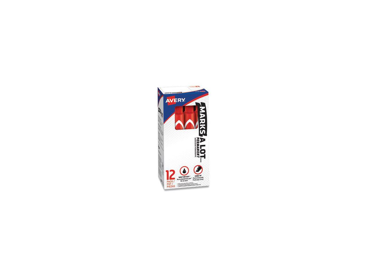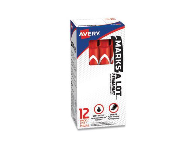 Avery Marks-A-Lot Large Desk-Style Permanent Marker Chisel Tip Red Dozen 08887