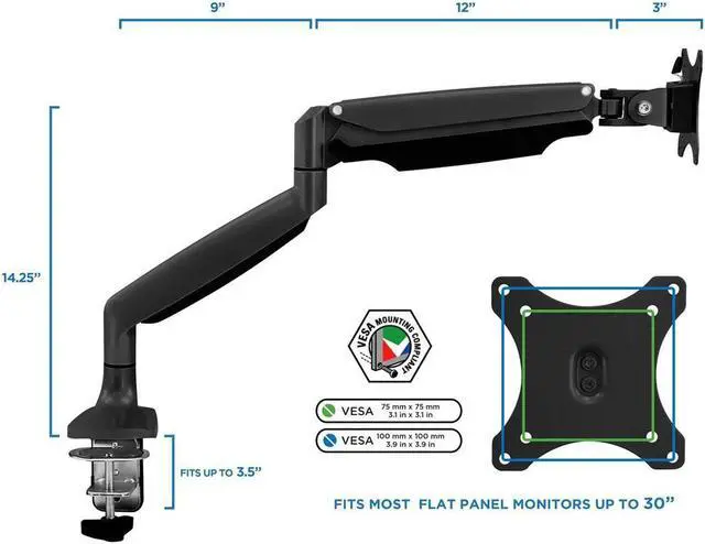 This single monitor mount is compatible with a variety of monitor brands and models and is can be used with displays from 13" to 32". Compatible with VESA 75 (75 x75 mm) and VESA 100 (100 x 100mm).