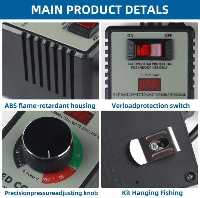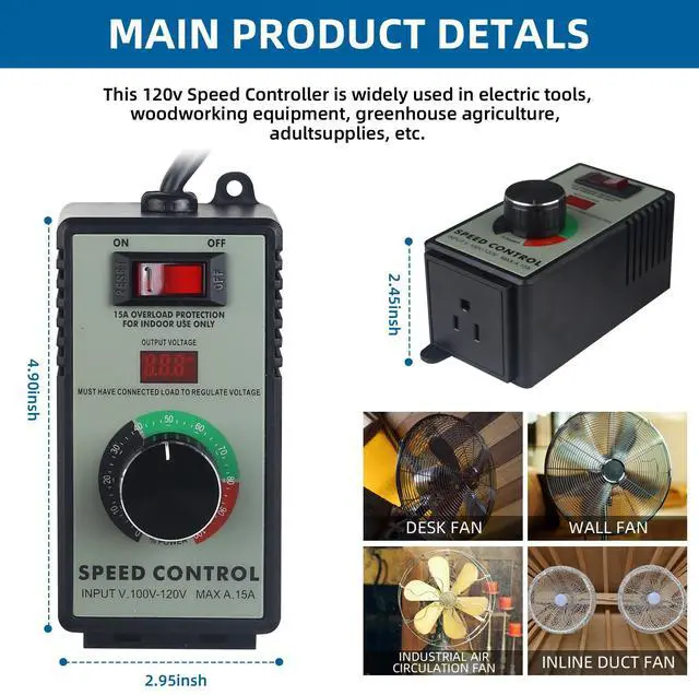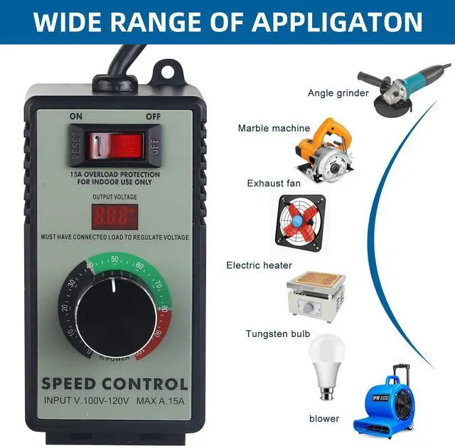 Perfect for powering fans, small motors, soldering irons, and other inductive load devices. It can also be used with resistive loads such as kettles and electric heaters.