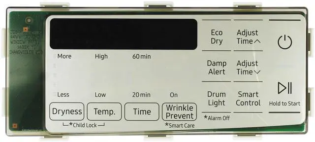 Samsung Dryer DC97-23123G Control Panel Part Number: DC97-23123G Manufacturer Part Number: Samsung DC97-23123G Warranty: 180-Day Warranty Known Models Samsung DVE45B6300W/A3
