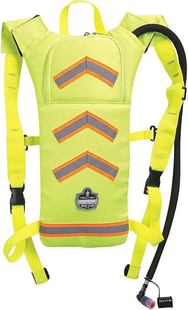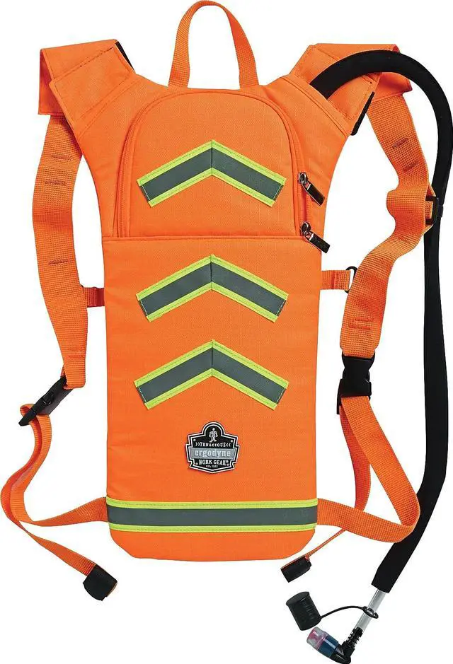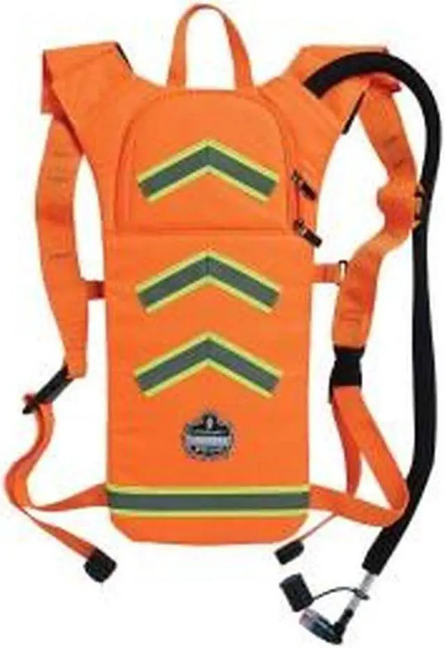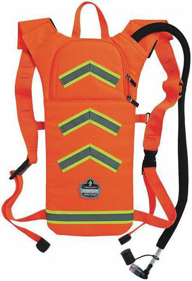 Hydration Pack, 70 oz/2 L Capacity, Depth 2 in, Length 19 in, Width 11 in, 600D Polyester Shell, EVA Reservoir, High Visibility Orange. This item has been restricted from sale in the following state (s): []