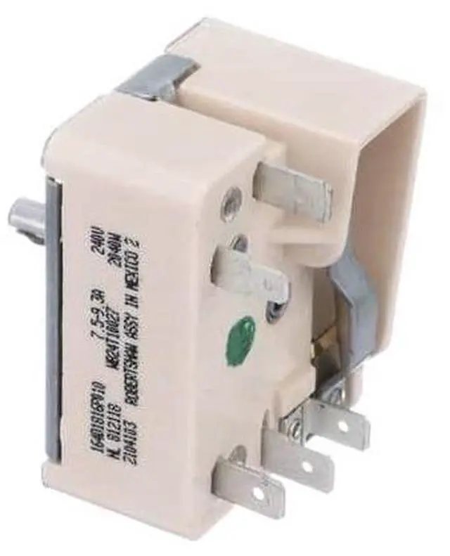 WB24T10027 2100W Infinite Switch for GE Range/Oven regulates heat levels for precise cooking control. It adjusts electrical resistance to modify the burners temperature. The switch cycles power on and off, maintaining consistent heat output up to 2100W.