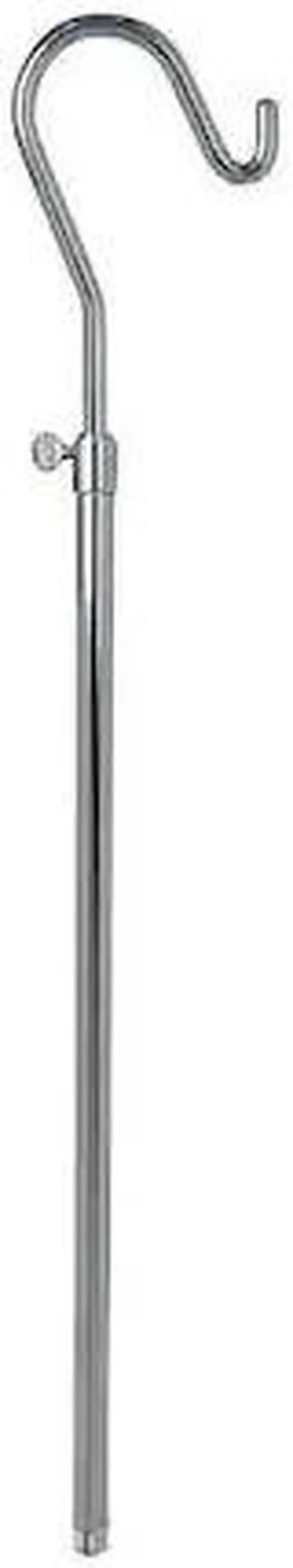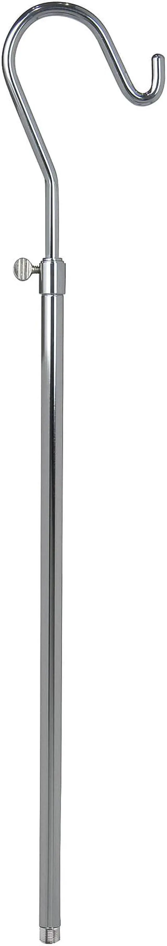 Used to hold a single garment for display, usually a blouse or shirt. Used with all types of garments, including men, women, and children's wear. Accepts all chrome bases with a 5/8" fitting. Hook adjustable from 18-36". Base add 6" to overall height.