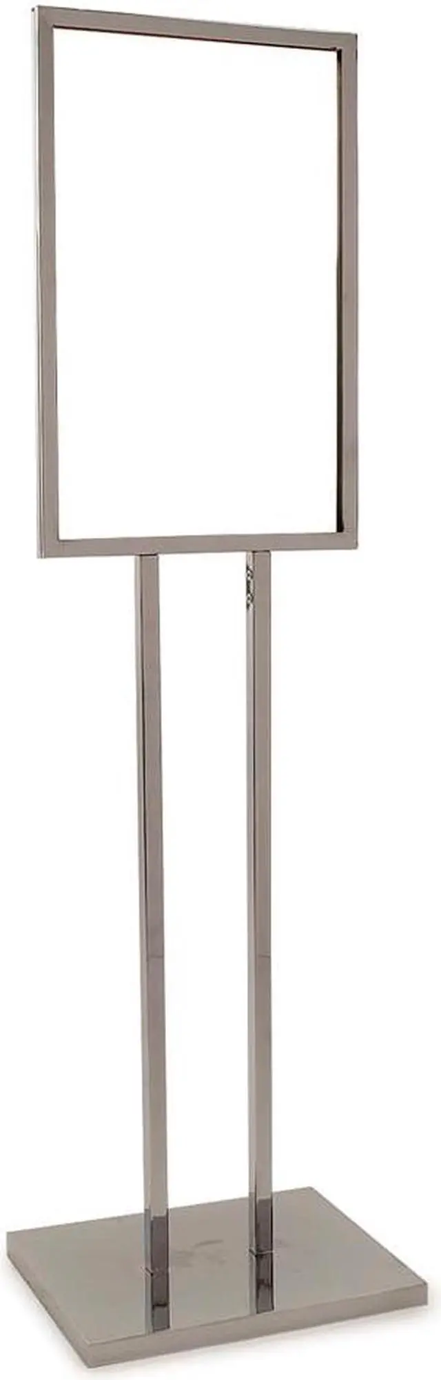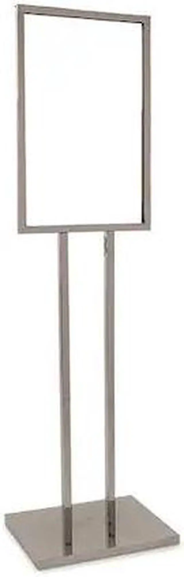 Popular, widely used metal floor standing bulletin sign holder. Perfect for any retail setting, including department stores, specialty stores, discounters, banks, hotels or hospitals. Base is weighted with fully enclosed wooden panel. Channel width is 1/4".