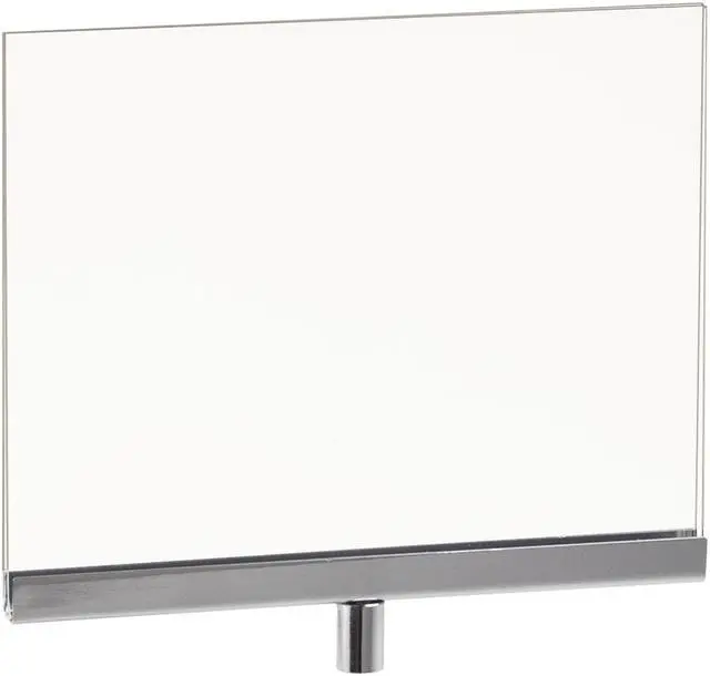 Attractive acrylic sign holder has chrome channel for added stability. May be used with upright and base for countertop. When used with stem, it may be mounted to most racks and merchandisers.