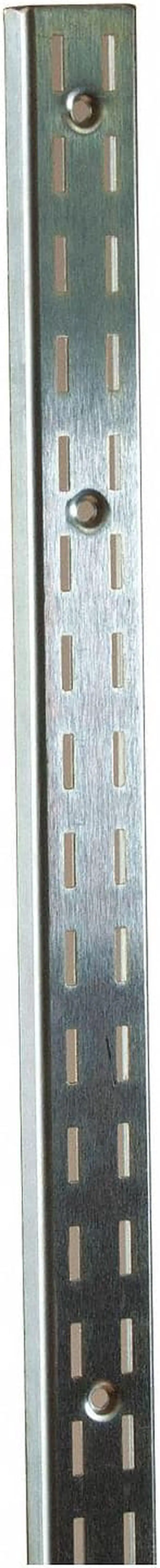 Universal surface-mounted slotted standards. 1/2" slots on 1" centers. Countersunk mounting screw holes are 9" apart.