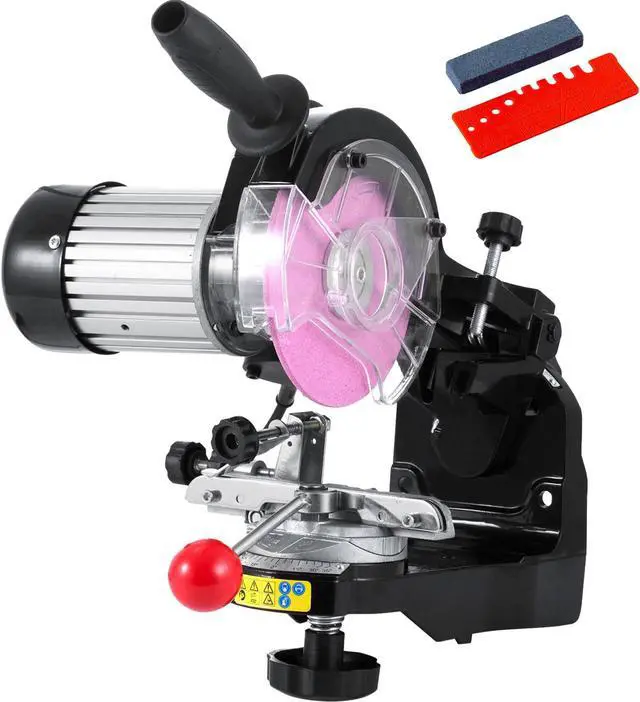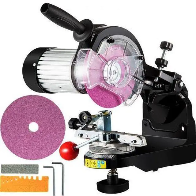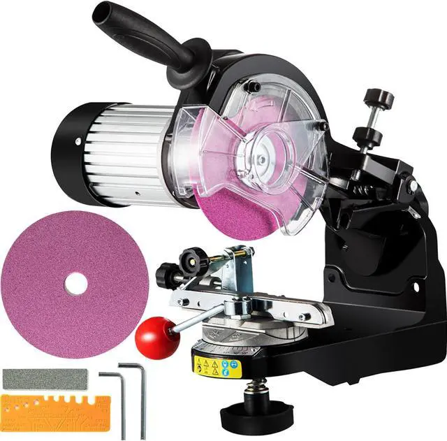 Maximum speed: 3000 RPM,Grinding Diameter: 5.5",Arbor Size: 0.875",Voltage: 110V±15%, 60Hz,Material: Aluminum,Protection: IP20,Power: 230 W(Peak 350 W),Weight: 12.8 lbs,Sharpens chain pitch: 1/4", 3/8" Low Pro, 0.325", 3/8", 0.404",Noise level: 85dB(A)