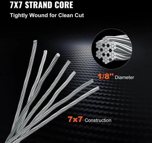Breaking strength: 1700 lbs,Construction: 7x7,Length:500' Reel,Packing size: 12"x12"x10" (30x30x25 cm),Material: T316 Stainless Steel,Diameter: 1/8" (3.2 mm)
