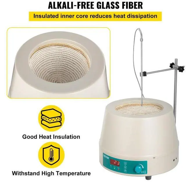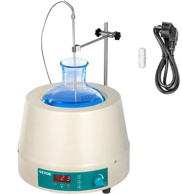 [MULTIPLE APPLICATION]- Ideal equipment for liquid heating and stirring used in the chemical, medical and sanitary field, environment protection, biochemistry, experimental analysis, and education research development field. Product Description2000ml Magnetic Stirrer Heating MantleThe magnetic stirrer heating mantle is designed for use in round-bottom boiling flasks. It has intelligent digital displays, featuring a large heating area, fast warm-up, uniform temperature, and accurate control. Using alkali-glass fiber insulation and nickel-chromium alloy resistance wire, its durable with excellent performance. Ideal equipment for heating and stirring liquids in modern petroleum, chemistry, medical and health, environmental protection and other fields.