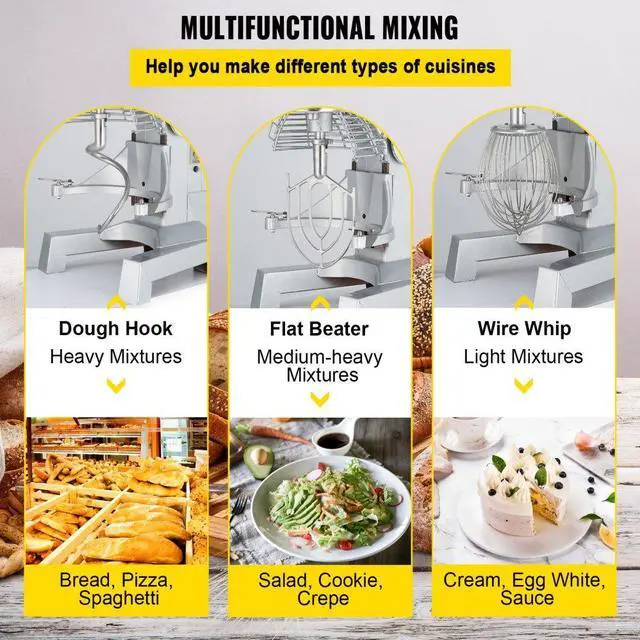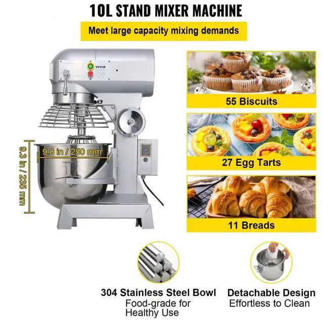 VEVOR Commercial Mixer 10Qt Mixer 3 Speed Dough Food mixer Pizza Bakery 450W