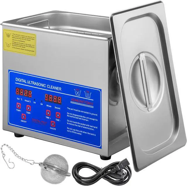 Premium Quality Deep Cleaning Heating Function Digital Control Panel Package ContentSpecifications Tank Material Stainless Steel SUS304 Heating Power 100W Ultrasonic Power 120W Frequency 40kHz Power Supply AC110V 60Hz Tank Capacity 2.8 -3 L (Since the bottom of the ultrasonic cleaner is a curved surface, the actual volume will be smaller. ) Time Setting 1 - 30 minutes (LED Digital Display) Temperature Setting 0-80 degrees Celsius Transducer Quantity 2 set Tank Size 9.5" 5.5" 4"/24x14x10 cm (L x W x H) Ultrasonic Cleaner Size 11"7" 8.5" /28x18x 21.6 cm (L x W x H) Package Contents1 x Ultrasonic Cleaner 1 x Cleaning Basket 1x Stainless steel cover 1 x Instruction Manual