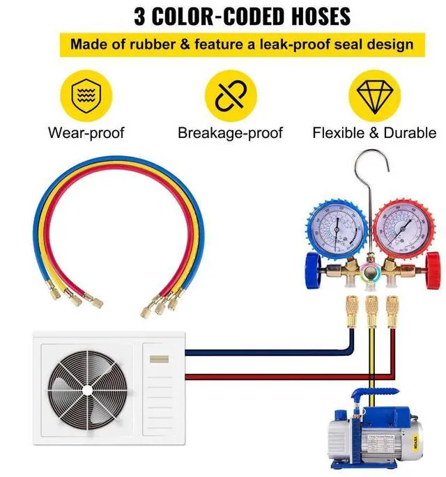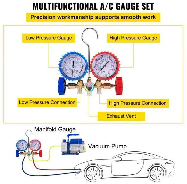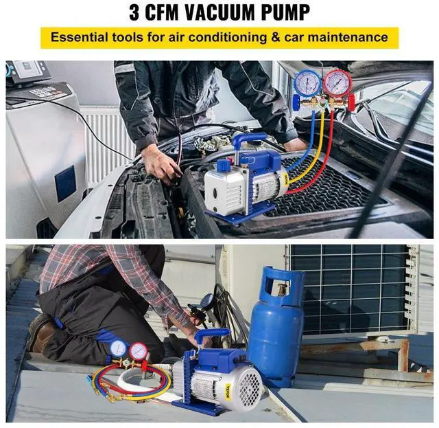 3cfm 1/4 Hp Vacuum Pump Hvac Refrigeration Gauge Refrigeration Kit Us Stock A/c