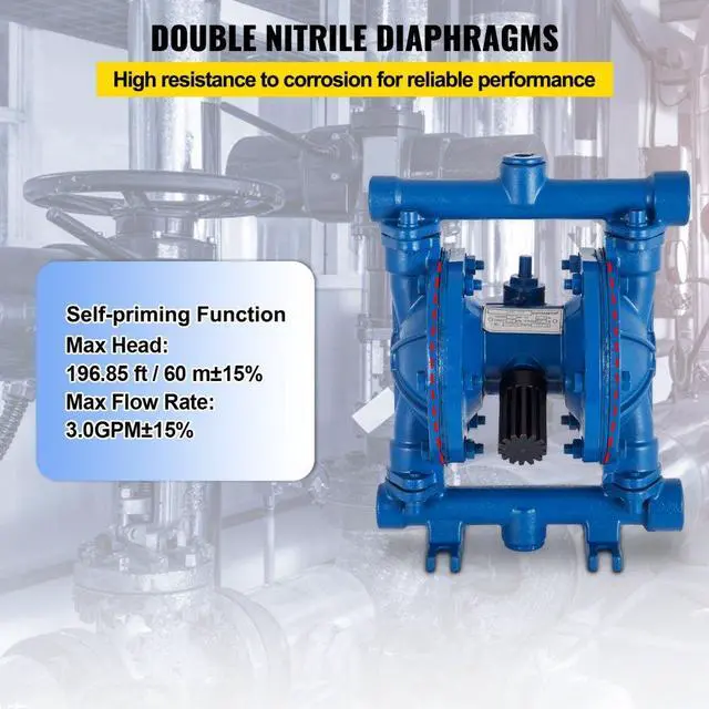 Air-Operated Double Diaphragm Pump 1/2" Inlet Outlet Cast iron 12GPM QBK-15-1/2