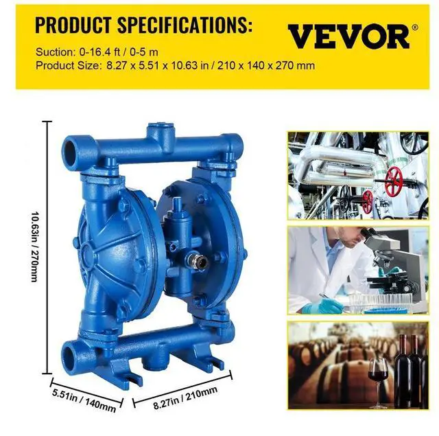 Suction: 0-5 m (0-16.4 ft),Outlet Port: 1/2 inch (12.7 mm),Body Material: Cast iron,Inlet Port: 1/2 inch (12.7 mm),Gross Weight: 6.5 kg (14.33 lbs),Color: Blue,Air Inlet Size: 1/4 inch (6.35 mm),Max PSI: 115 psi,Gas Nozzle: 0.32 inch (8 mm),Max Flow Rate: 2 m3/h (12 GPM),Max Head: 69 m (226.4 ft)