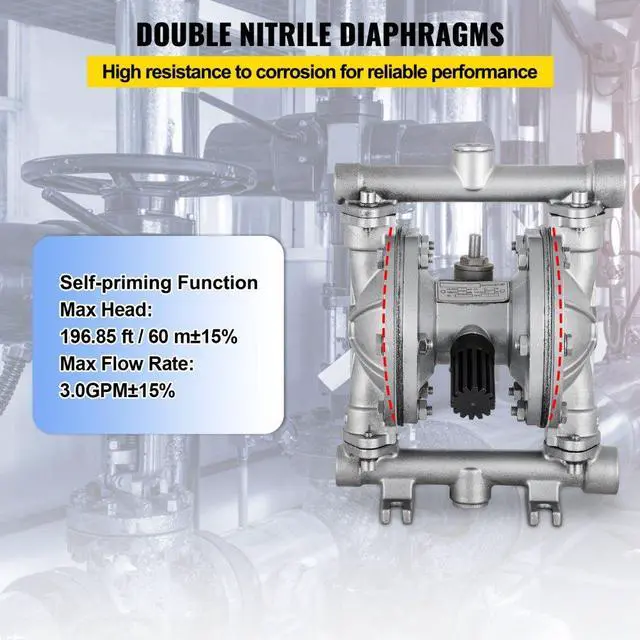 VEVOR Air-operated Double Diaphragm Pump 1/2inch Inlet And Outlet 12 Gpm Ca