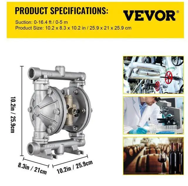 • Model No : YBGMBQBK-15P00001V0.Brand : VEVOR.UPC No : 617201610329.Air-operated Double Diaphragm Pump 1/2inch Inlet And Outlet 12 Gpm Ca.Country of Origin is CA.