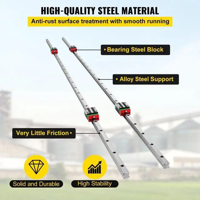 Linear Rail Kits Linear slide kit includes 2 pieces of 1500mm/59" long HGH20 rail shafts and 4 bearing pillowblocks. High Quality Material This bearing rail is constructed with the quality main axle, and the bearing blocks can resisthigh temperature and own long service life. High Hardness Rigidity The beautiful and anti-rust surface treatment, with high rigidity and high load. Complete Sliding Unit Professional and technical rail and block, stabilizing the original rail. Move smoothlywithout deflection, minimal wear and low noise while using. Easy to Assemble Pre-drilled holes on the support rail mounts for ease of mounting.