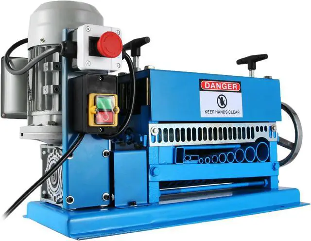 Heavy-Duty Gearbox This quality gearbox leads to fast stripping speed, fixing machine position, and safe reliable use. WideCompatibility It is suitable for different sizes of wires and perfect for recycling copper wire, removing the plastic and rubber insulation from undamaged scrap wires. This machine is also ideal for industrial use. Wire Cable Stripping Machine This cable peeling machine is easy to transport and ready for use just with a 110V power supply and a stable table. It reliably splits cables between 1.5 mm and 38 mm with up to 50 feet per minute.